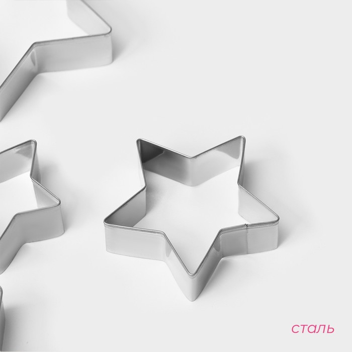 Набор форм для вырезания печенья Доляна «Звёздочки», 5 шт: 8×8×1,5 см, 7×7×1,5 см, 6×6×1,5 см, 5×5×1,5 см, 3,9×3,9×1,5 см, цвет хромированный