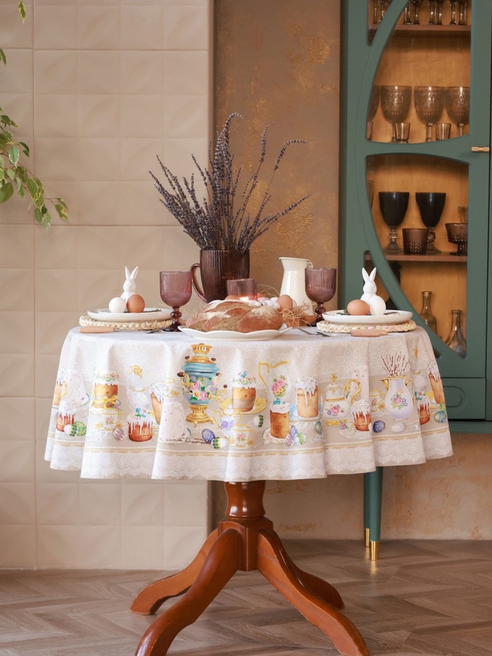 Скатерть Этель «Пасхальные куличи» d=148 см, 100% хлопок, саржа 190 г/м²