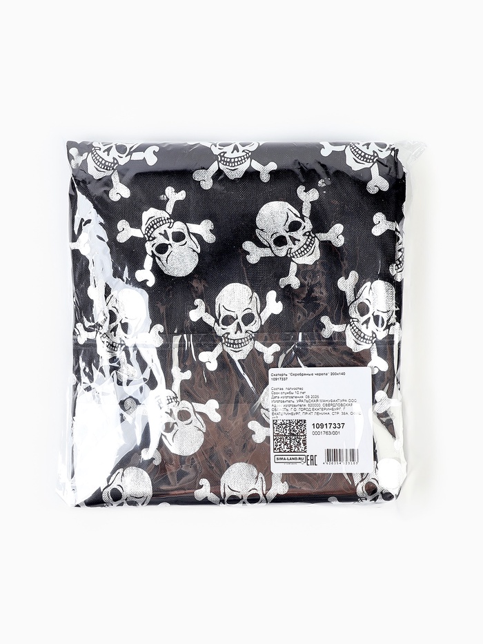 Скатерть на хэллоуин «Серебряные черепа», 200 х 140
