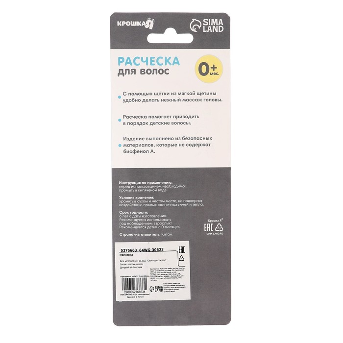 ""Расческа-щетка с мягкой щетиной предназначена для малышей с первых дней жизни. Мягкая пушистая щетка имеет удобную эргономичную ручку, улучшает кровообращение кожи головы, не царапая её. Нежный массаж расслабляет и успокаивает перед сном, а стимуляция волосяных луковиц ускоряет рост первых волос малыша. Щетка с мягким ворсом позволит пригладить волосики и придать им аккуратный вид. Размер и форма подобраны с учётом возрастных особенностей. Аксессуар удобно ложится в маленькую ладошку крохи. Изготовлено из безопасного материала - не содержит бисфенол А.""