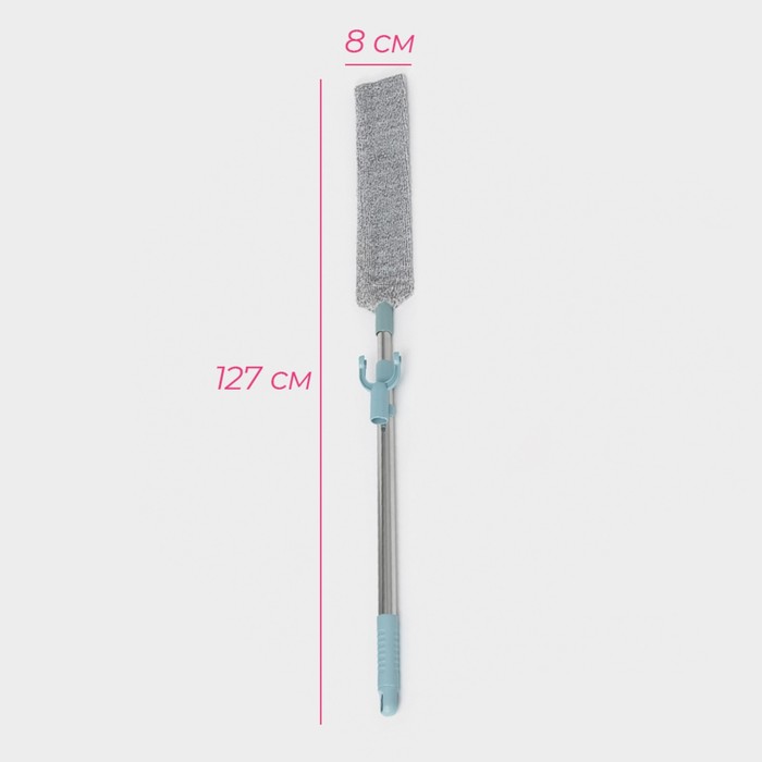 Швабра для мытья пола плоская Доляна, насадка из микрофибры 40×10 см, телескопическая стальная ручка 68-121 см