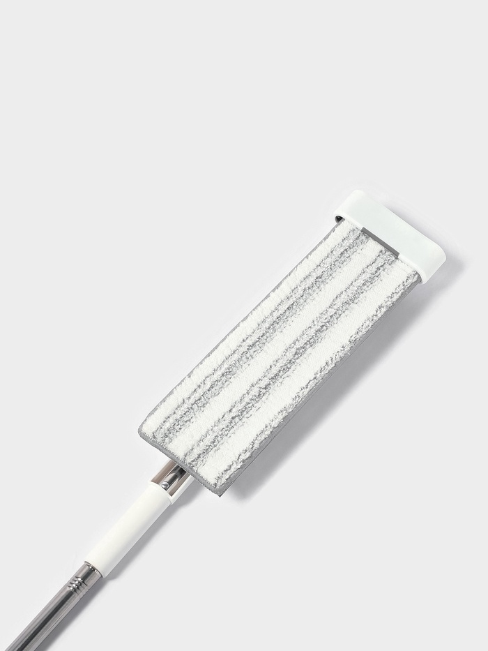 - Плоская насадка из микрофибры легко очищает труднодоступные участки и эффективно собирает грязь.