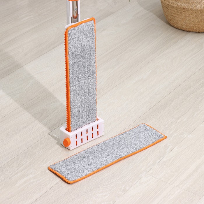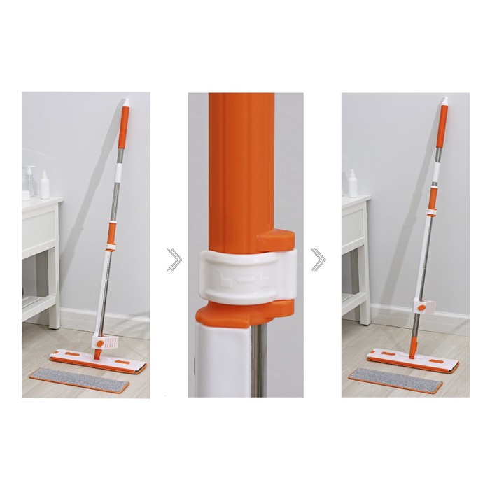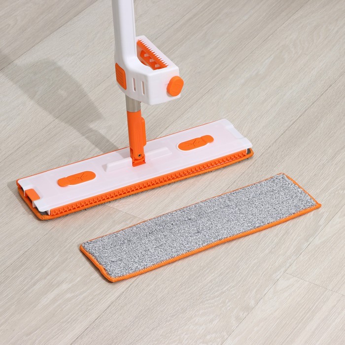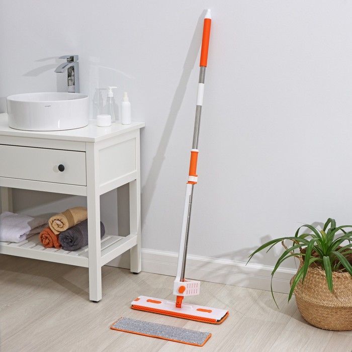 Швабра для мытья пола плоская Доляна, насадка из микрофибры 43×14 см, телескопическая ручка 80-120 см