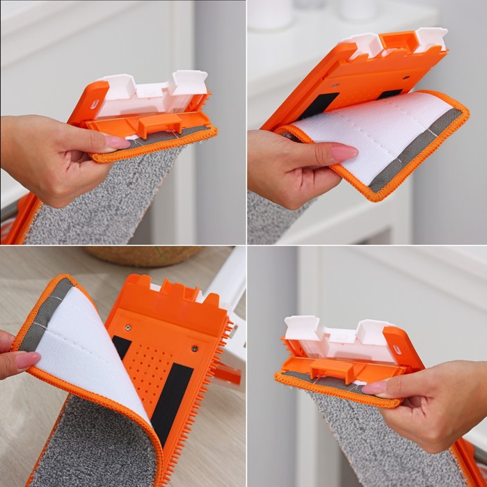 - Мягкая насадка из микрофибры прочно крепится к платформе швабры на специальные пазы и на липучки, она деликатно очищает поверхность пола, отлично впитывает воду, не оставляет разводов, ворсинок и не царапает поверхность.