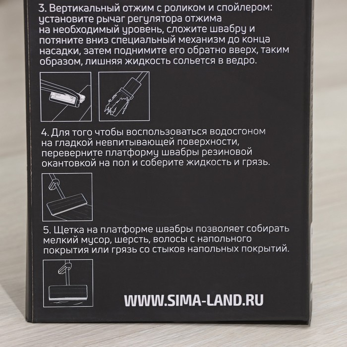 - Водосгон быстро и эффективно собирает жидкость, грязь с гладких напольных поверхностей.
