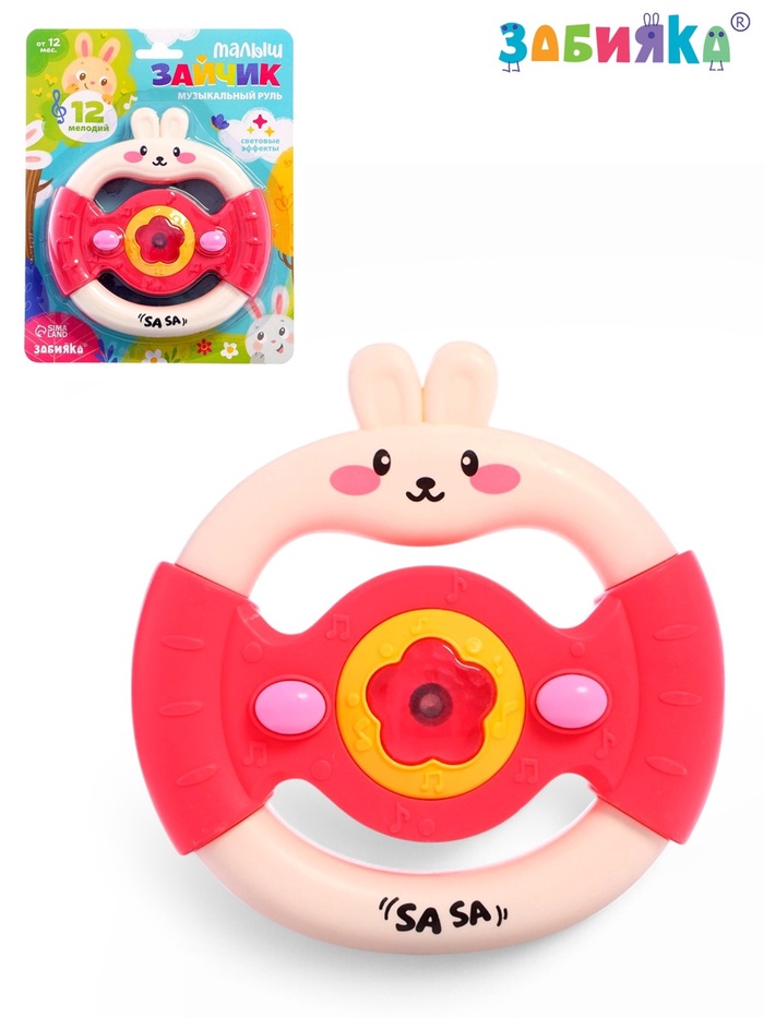 Музыкальный руль «Малыш зайчик», звуковые и световые эффекты, розовый