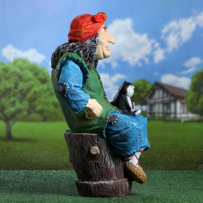 Садовая фигура "Баба Яга на ступе с кошкой" 74х40х36 см МИКС