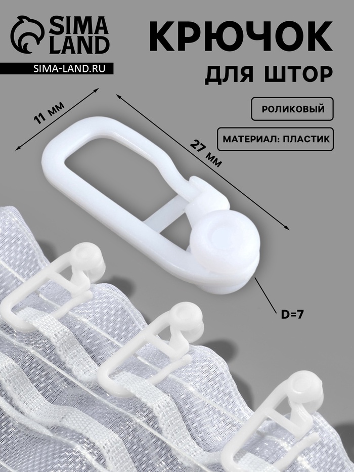 Крючок для штор, роликовый, 20 × 11 мм, цвет белый