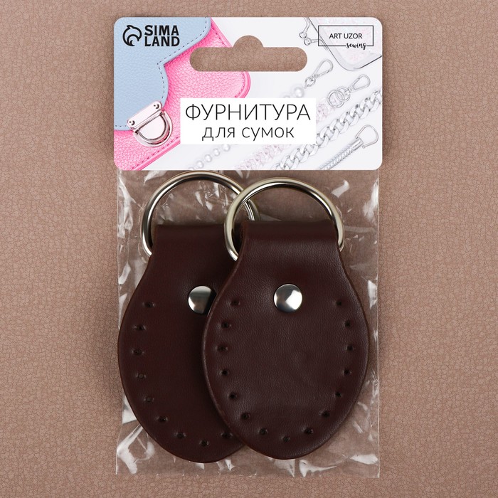 Петля пришивная для сумки, с полукольцом, пара, 8 × 4,5 см, цвет коричневый/серебряный