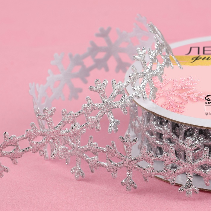 Лента декоративная фигурная «Снежинки», 25 мм, 9 ± 0,5 м, цвет серебряный