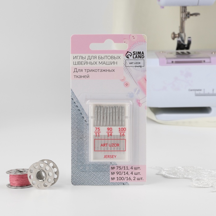 Иглы для бытовых швейных машин, для стрейч-ткани, №70-100, 3 шт