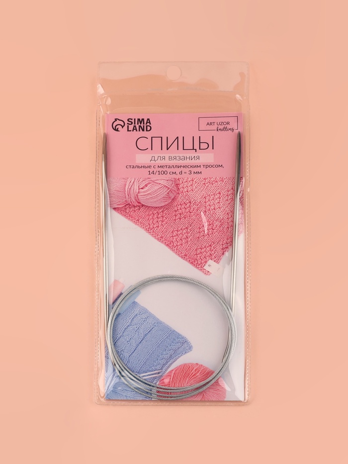 Спицы круговые, для вязания, с металлическим тросом, d = 3 мм, 14/100 см