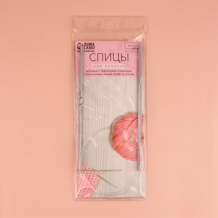 Спицы круговые, для вязания, с тефлоновым покрытием, с пластиковой леской, d = 4 мм, 14/80 см