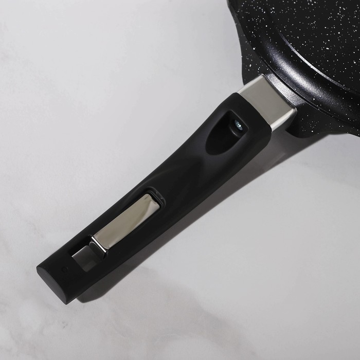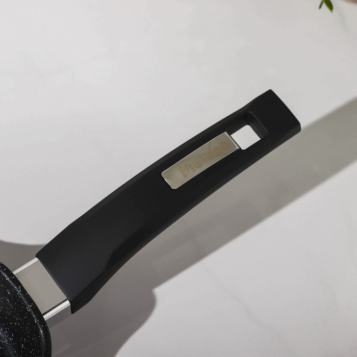 Сковорода блинная, d=20 см, пластиковая ручка, антипригарное покрытие, цвет тёмный мрамор