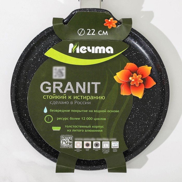 Сковороды серии Granite выполнены из прочного литого алюминия. Посуде не страшна деформация под воздействием высокой температуры, изделие прочное и лёгкое.