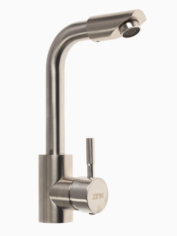 Смеситель для раковины ZEIN ZS-2, картридж 35 мм, нержавеющая сталь, сатин
