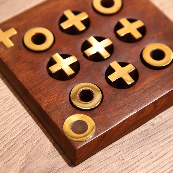 Игра настольная "Крестики-нолики" 13х13 см, манговое дерево, латунь