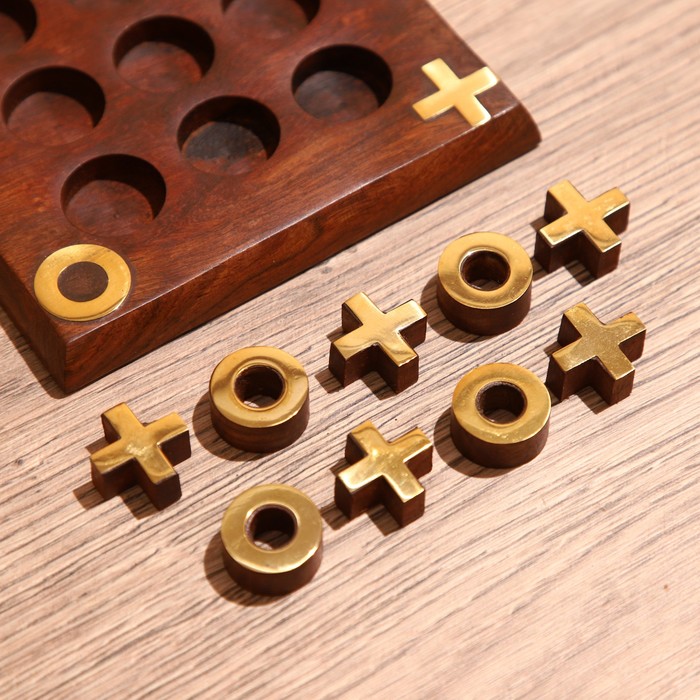Игра настольная "Крестики-нолики" 13х13 см, дерево шишам, латунь