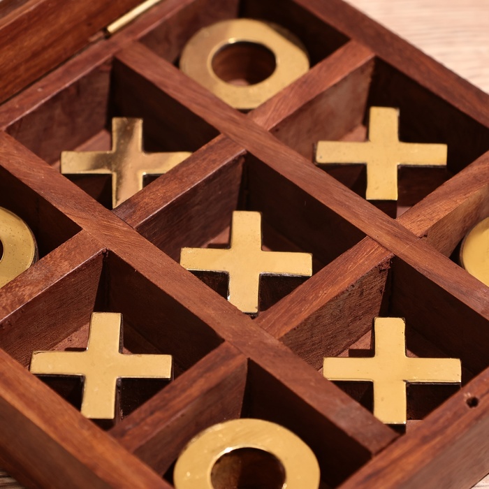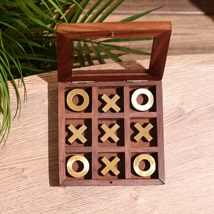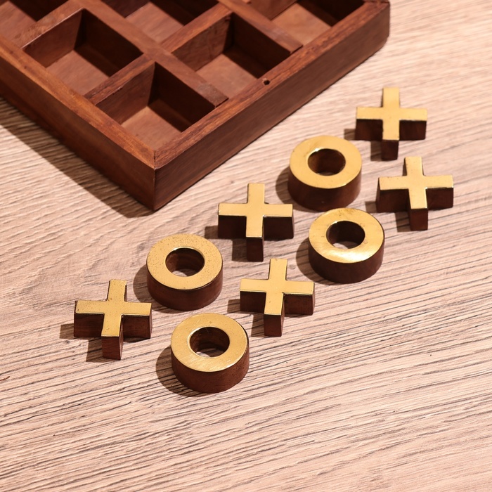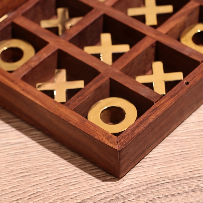 Игра настольная "Крестики-нолики" 13х13 см, дерево шишам, латунь