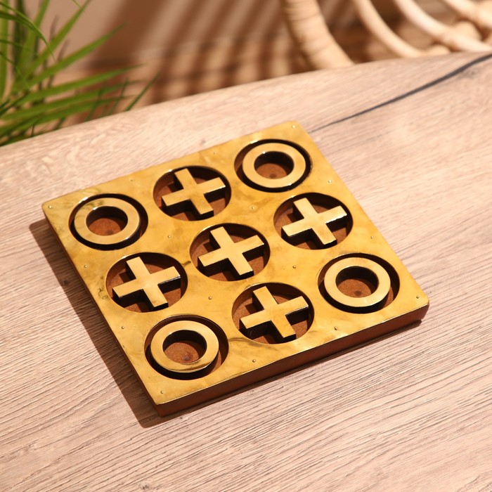 Игра настольная "Крестики-нолики" 18х18 см, манговое дерево, латунь