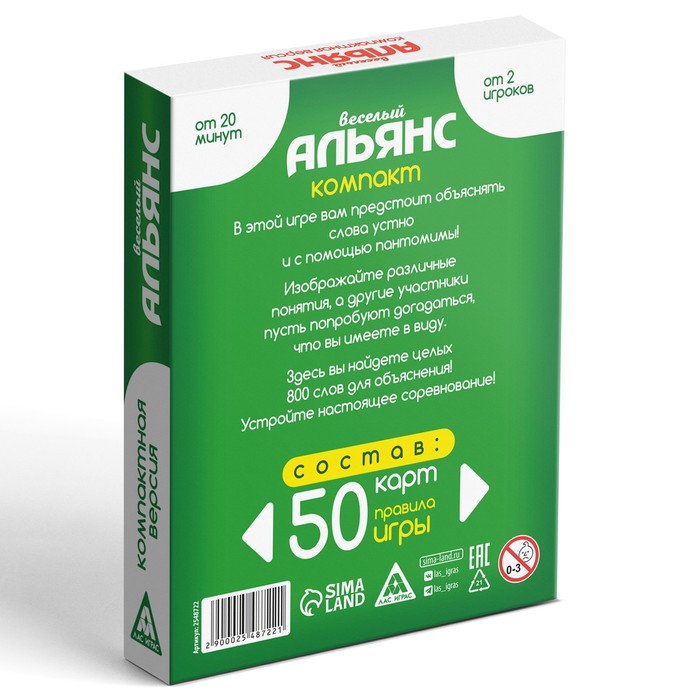 Карточная игра на объяснение слов «Веселый Альянс», 50 карт