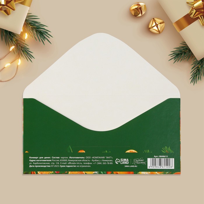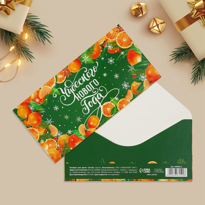 Конверт для денег «Чудесного Нового года», мандарины, 16.5 × 8 см