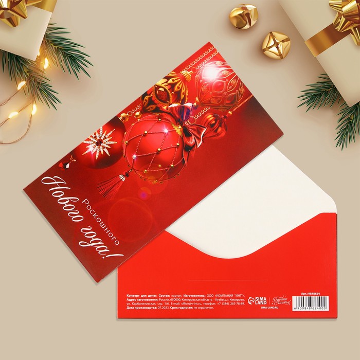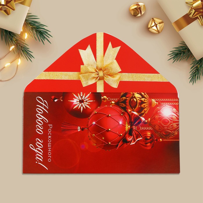 Конверт для денег «Роскошного Нового года!», ёлочные игрушки, 16.5 × 8 см