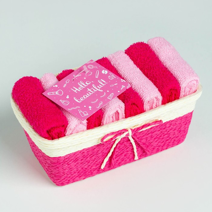 Набор махровых декоративных салфеток Этель "Beautiful"30х30см-8шт, цвет фуксия, 100% хлопок