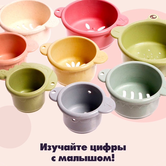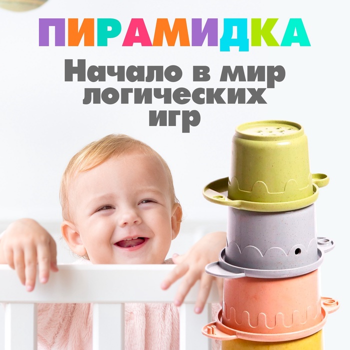 Пирамидка — одна из первых развивающих игрушек малыша. Состоит из 8 стаканчиков разных размеров.