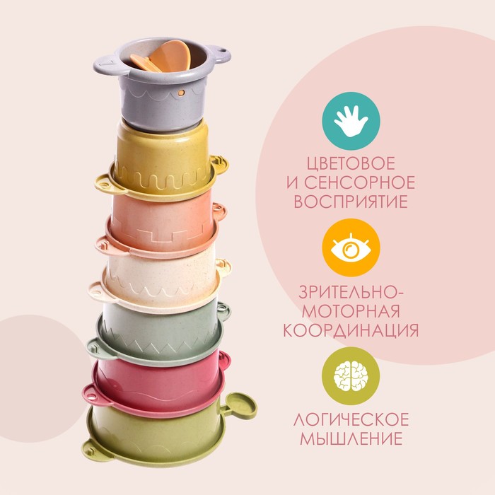 Пирамидка — одна из первых развивающих игрушек малыша. Состоит из 7 стаканчиков разных размеров.