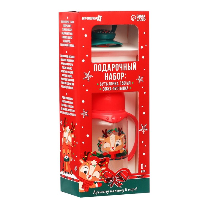 Подарочный новогодний детский набор «Наше чудо»: бутылочка для кормления 150 мл + пустышка силикон ортодонтическая
