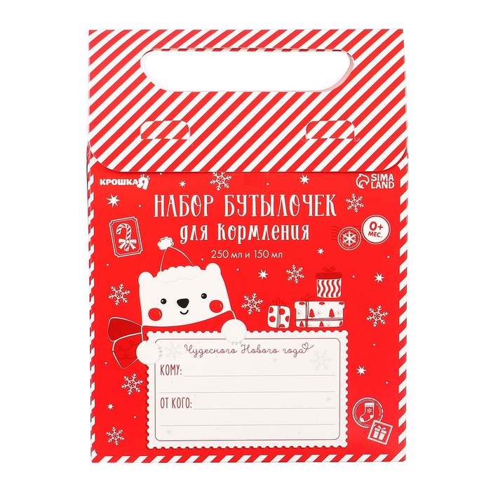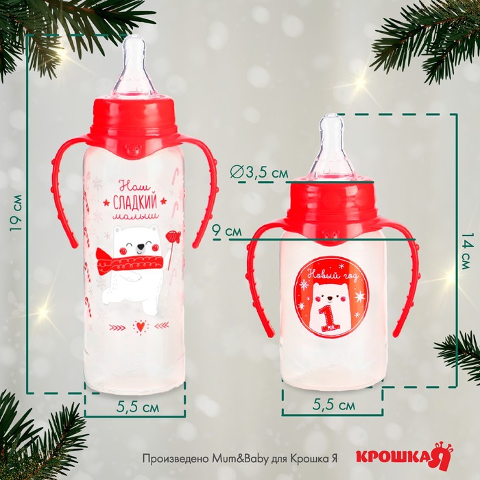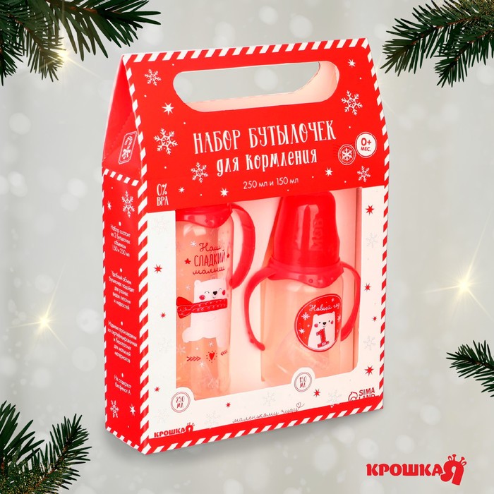Подарочный новогодний детский набор Крошка Я «Сладкий малыш»: бутылочки для кормления 150 и 250 мл, прямые, от 0 мес.