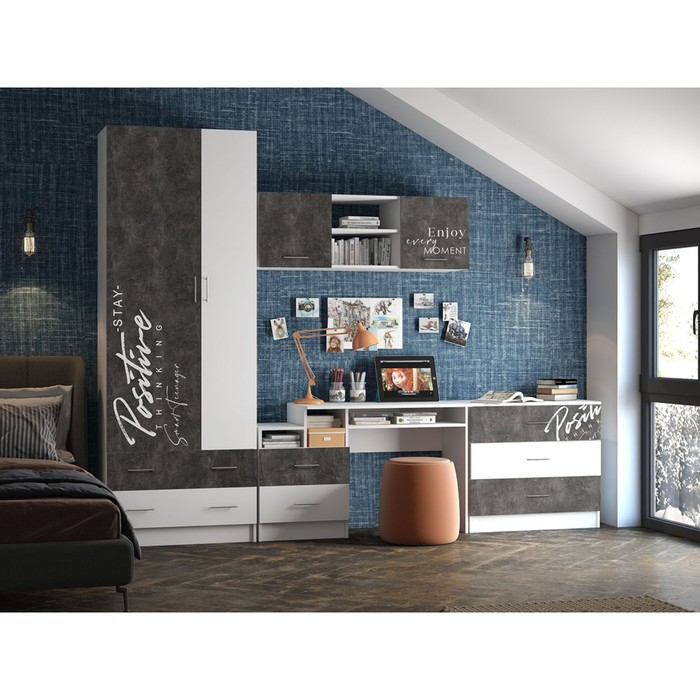 Комод 3 ящика Вега Позитив, 800х400х726, Белый/Бетон темный