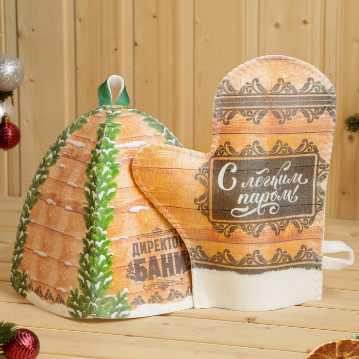 "Банный набор: шапка, коврик и рукавица "Самому лучшему банщику""