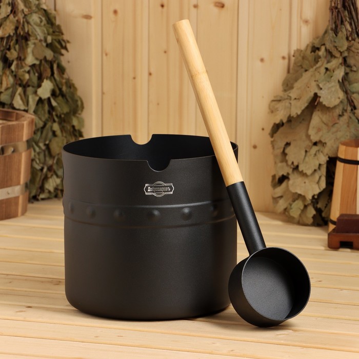 Набор для бани 2 в 1: ведро 5л и ковш , порошковое покрытие, черный V-B125