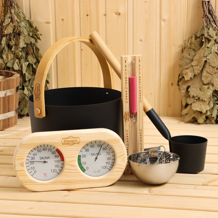 Набор для бани 5 в 1: ведро 7 л, ковш, песочные часы, термометр-гигрометр, аромачаша 400 мл
