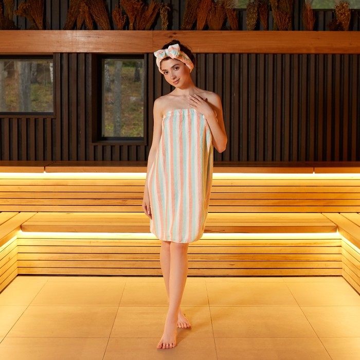 "Набор для бани и ванной Этель "Полосы" полотенце-парео 75*120 см+повязка"