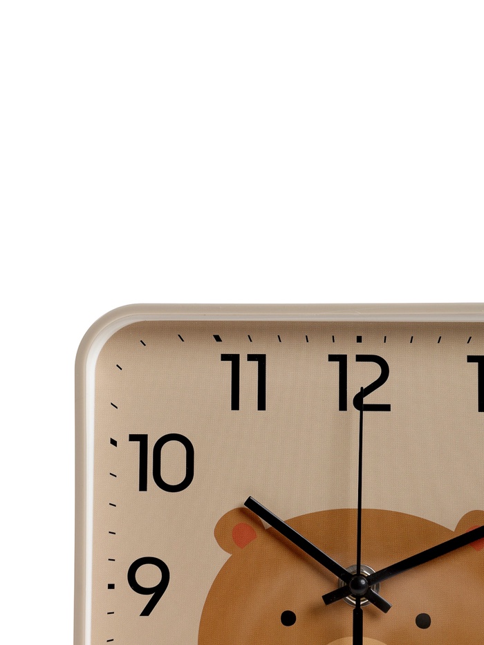 Квадратные настенные часы размером 19×19 см с изображением милого медвежонка на бежевом фоне воплощают нежность и игривость, идеально подходя для детских комнат или игровых зон. Кварцевый механизм обеспечивает плавный ход стрелок, а арабские цифры на циферблате делают отсчёт времени интуитивно понятным, помогая развивать чувство времени у малышей с раннего возраста.