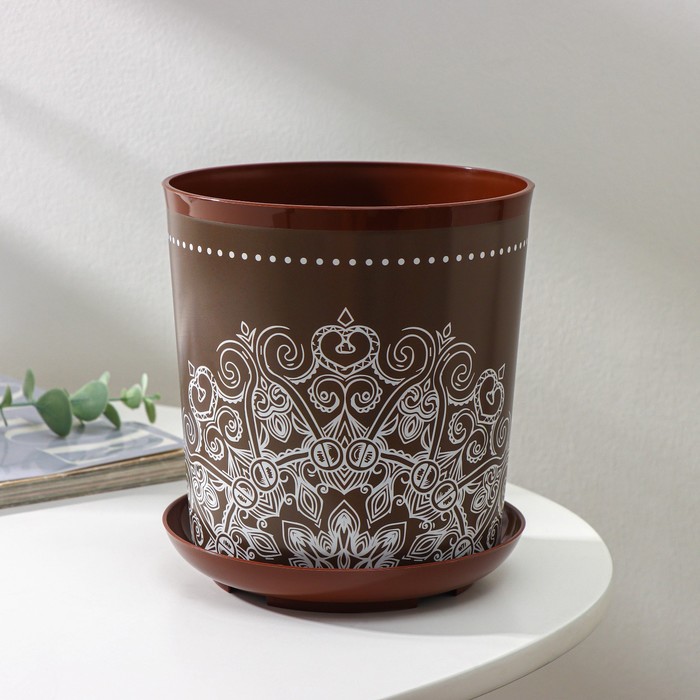 Горшок для цветов с поддоном Доляна «Кракле», 1,6 л, d=14 см, h=15,5 см, цвет коричневый