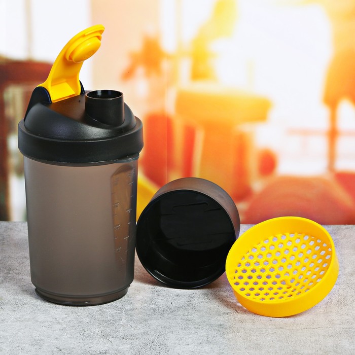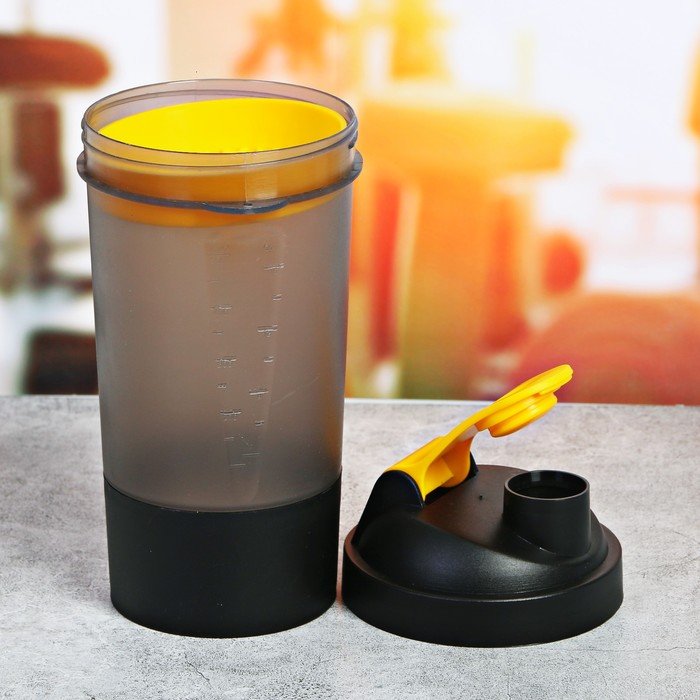 Шейкер спортивный с чашей под протеин чёрный, 500 мл