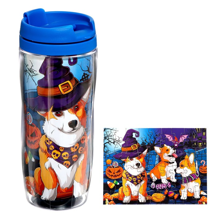 Термостакан с пазлом «Ужасно милые корги», 54 элемента, 350 мл