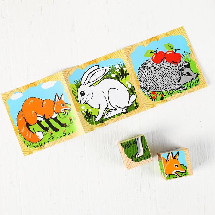 Мягкие кубики «Зверята», 4 шт, 8 х 8 см, по методике Монтессори