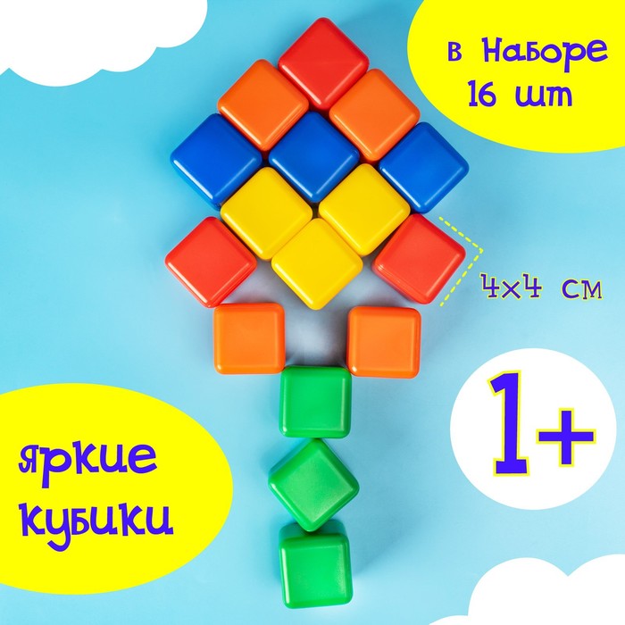 Набор цветных кубиков, 16 штук, 4 × 4 см