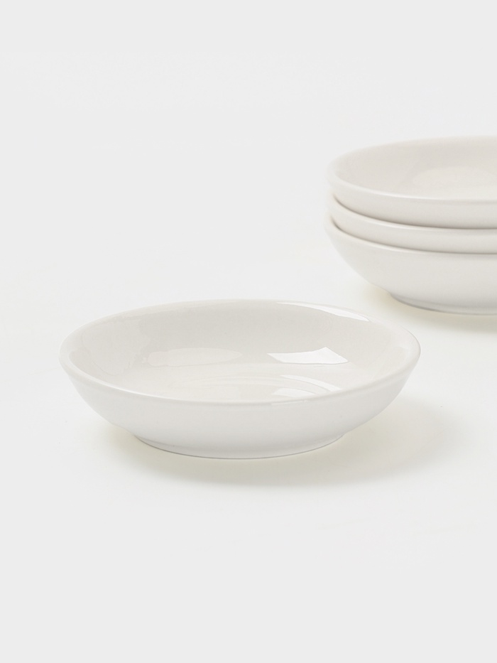 Белые фарфоровые соусники по 50 мл — идеальный размер для горчички, соуса, меда или масла. Четыре штуки в наборе — хватает на каждый приём пищи, не перегружая стол, но обеспечивая порядок.