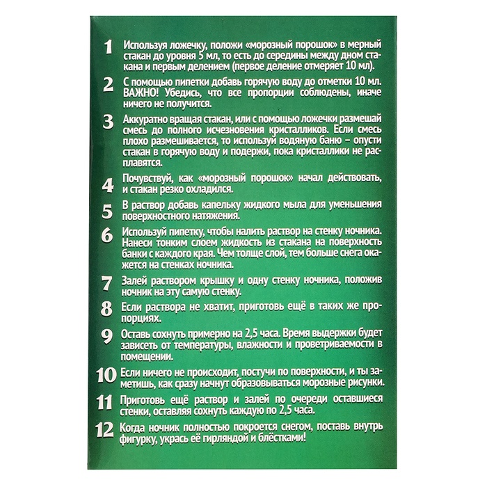 <h3>Как сделать ночник</h3>- В мерном стакане смешайте 2 г морозного порошка и 10 мл горячей воды.