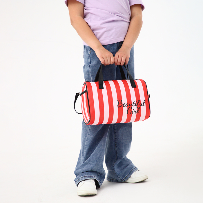 Сумка спортивная на молнии, 2 наружных кармана, длинный ремень, цвет красный/белый