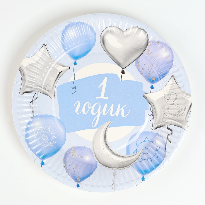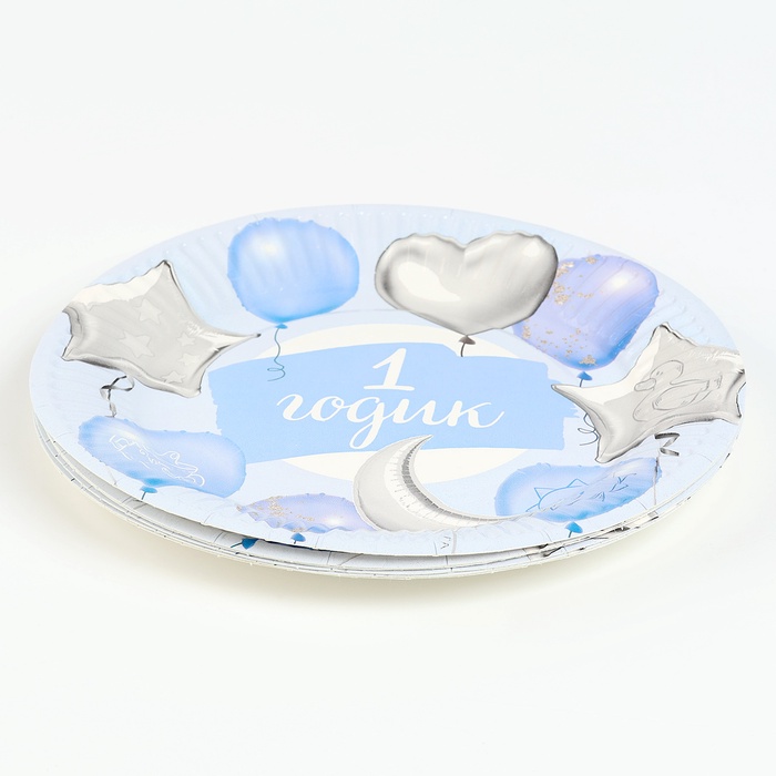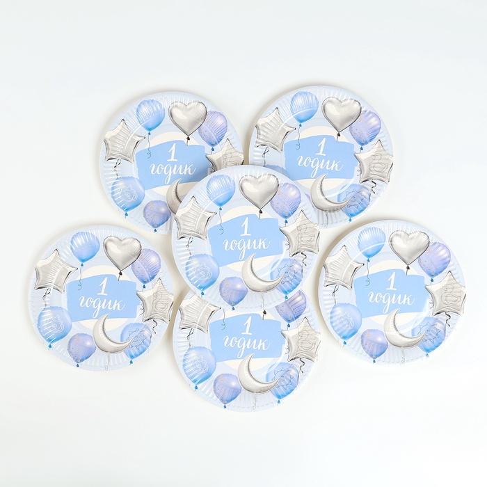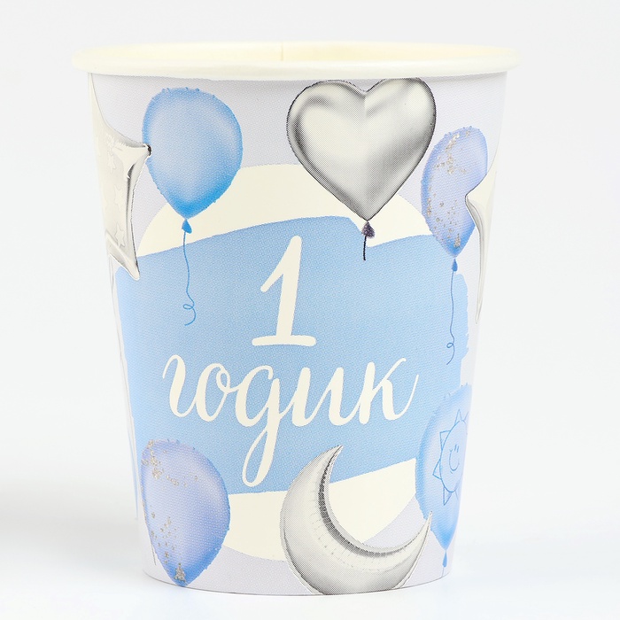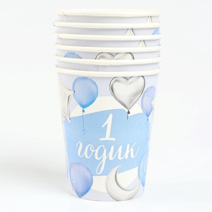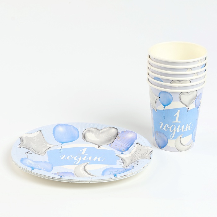 Набор бумажной посуды одноразовый «1 годик, мальчик»: 6 стаканов, 6 тарелок
