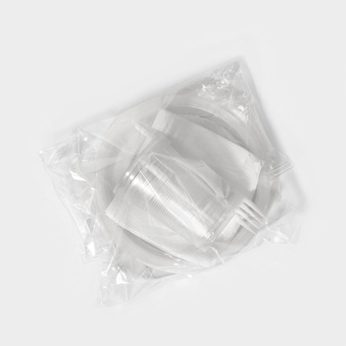 Набор одноразовой посуды на 3 персоны,стакан 200 мл,стопка 100 мл,тарелка d=165,вилка,салфет 1046952