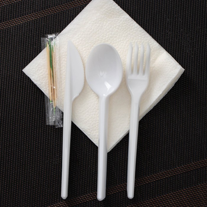 Набор одноразовой посуды на 6 персон «Биг-Пак №1», тарелки глубокие, тарелки плоские, стаканчики: 200 мл, 300 мл, 500 мл, вилки, ножи, ложки, трубочки, бумажные салфетки, зубочистки, цвет белый