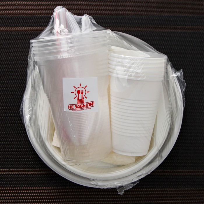 Набор одноразовой посуды на 6 персон Не ЗАБЫЛИ! «Пикник», тарелки d=20,5 см, стаканы 200 мл, вилки, цвет белый